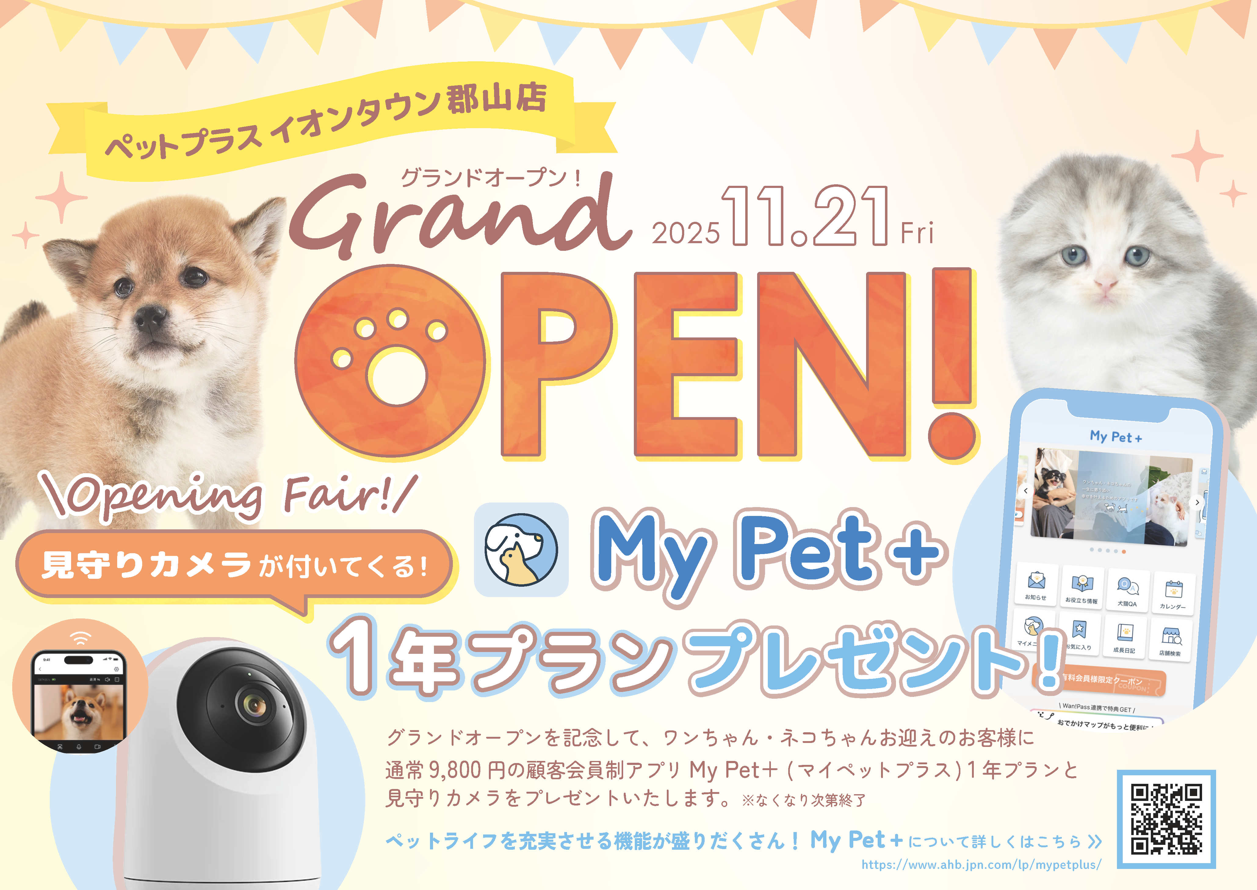 2025年11月21日(金) ペットプラス イオンタウン郡山店 GRAND OPEN!