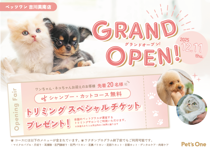 2025年12月11日(木) ペッツワン 吉川美南店 GRAND OPEN!