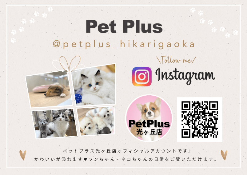ペットプラス光ヶ丘店のInstagramでは、ワンちゃん・ネコちゃんの可愛い日常やお店のほっこりする毎日をお届けしています。